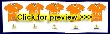 The Phase 2 high-frequency words presented on orange football shirts. Tricky words are in italics.