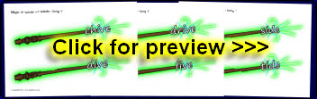 Magic ‘e’ words with the long vowel sound ‘a’ presented on wizard wands.