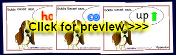 The teacher shouts out ‘Bobby Basset says...’ and reads the word on the page, your class called out ‘We say...’ and the opposite word!