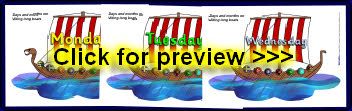 A set of printable Viking longboats with a selection of words from the Year 1/2 and Year 4/5 lists as specified in the National Literacy Strategy.