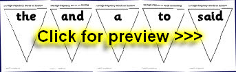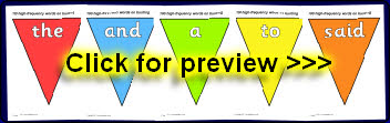 100 high-frequency words presented on bunting triangles. Print on coloured paper or have your class paint or decorate the triangles themselves.