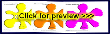The next 200 common words as specified in the DfES ‘Letters and Sounds’ publication presented on colour paint splats. Ideal for hanging in your classroom or on keyword displays.