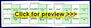 A set of follow-on cards featuring synonyms. One child calls out the start card and the pupils then match/call out the corresponding cards until the game ‘loops’ back to the original child.