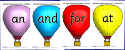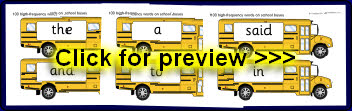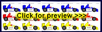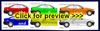 The 100 high-frequency words as specified in the DfES ‘Letters and Sounds’ document, presented on coloured cars.