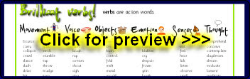 A simple word mat listing lots of interesting verbs related to movement, voice, objects, emotion, senses and thought.