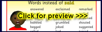 A printable word mat featuring useful words that can be used in writing instead of ‘said’.