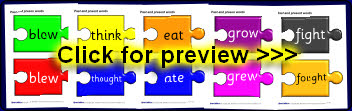 A set of colourful printable jigsaw pieces featuring verbs in past and present tense.