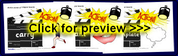 A set of 100 verbs or ‘action words’ presented on movie clapper boards. These are ideal for classroom displays of to aid discussion and writing. Create a fun movie-themed display with these or cut out the clapper boards and use to call or act out certain actions.