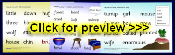 Five word mats with important story words for some common fairytales: The Three Little Pigs, Goldilocks and the Three Bears, The Gingerbread Man, Red Riding Hood and The Enormous Turnip. These are ideal for use when children are retelling the stories.