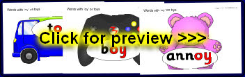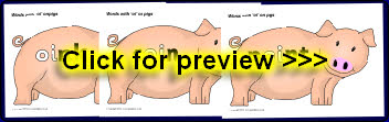 Words with the ‘oi’ phoneme presented on cartoon pigs.