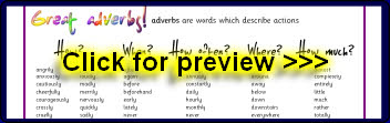 A simple word mat listing lots of useful adverbs related to how, when, where, how often and how much.