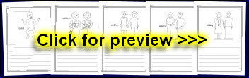 A set of simple printable sheets featuring superheroes for children to colour along with writing lines for topic-related writing.