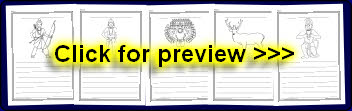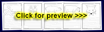 A set of simple printable sheets featuring images of British animals for children to colour along with writing lines for topic-related writing.