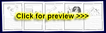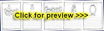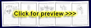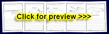A set of simple printable sheets featuring pictures of various fantasy creatures for children to colour along with writing lines for story writing.