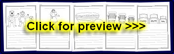 A set of simple printable sheets featuring images from the story of The Gingerbread Man for children to colour along with writing lines for story-related writing.