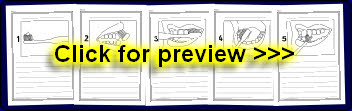 A set of simple printable sheets featuring colouring pictures of the steps for brushing your teeth along with writing lines for children to write their own instructions.
