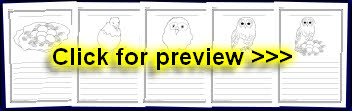 A set of simple printable sheets featuring images of owl growth for children to colour along with writing lines for topic-related writing.