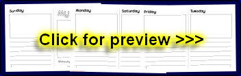 Printable holiday diary booklets for 5, 6 or 7 week holidays. One week per A5 page.