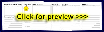 A printable 2 week holiday diary booklet where children write about what they have done each day.