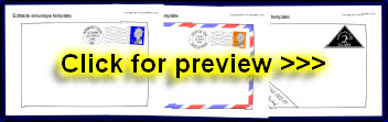 Editable templates for Microsoft Word that enable you to add text to various basic envelope designs. Useful also as writing templates for children to write their own addresses on.