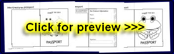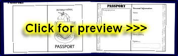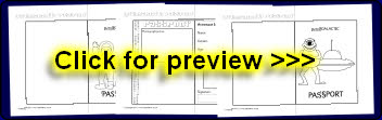 Simple printable double-sided passport writing frames for astronauts and aliens.