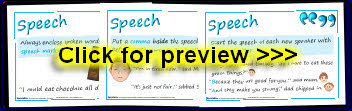A set of printable posters showing the rules for writing speech in a clear and simple way.