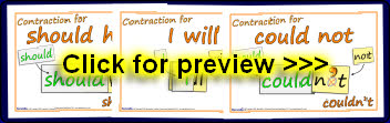 A set of 20 printable posters visually showing the use of contractions. A helpful reference or display resource for your classroom.