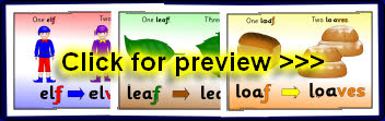 A set of printable posters featuring singular and irregular plural forms of words ending with ‘f’ and ‘fe’.