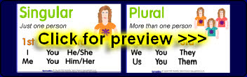 Two simple A4 posters showing the different singular and plural pronouns when referring to people.