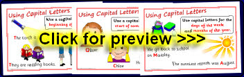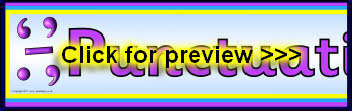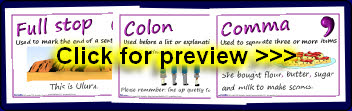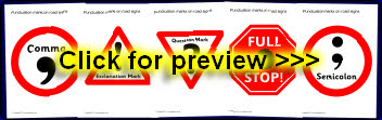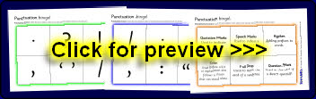 A set of 7 printable cards showing the common punctuation marks used in writing.