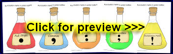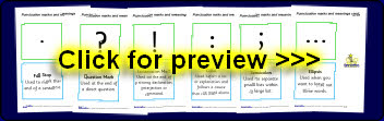 A set of cards with punctuation marks and their corresponding uses for matching activities.