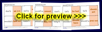 A set of 23 loop cards featuring phrases and their abbreviations using apostrophes.
