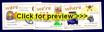 A set of posters that show the differences in use of ‘were’, ‘we’re’, ‘where’ and wear’.