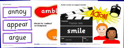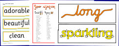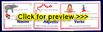 Types of words posters (Ref: SB6055) A set of posters showing the different types of words: nouns, pronouns, adjectives, verbs and adverbs with examples.