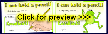 Certificates to present to pupils as awards for learning to hold their pencil correctly.