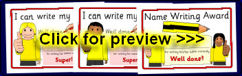 A Microsoft Word template document where you can type pupil names (or other words) and print out individualised sheets to children to practise their name writing. Works best if you have the Sassoon Primary Infant font.