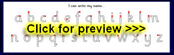Print and laminate these two name writing sheets. Each sheet has the lowercase alphabet with arrows to show pupils where to begin writing their letters.