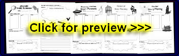 A set of simple printable sheets for planning a story themed with different fictional genres.