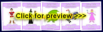 A set of 13 A4 printable posters showing common characters from fairytales. Including prince, princes, witch, wizard, dragon, fairy, elves, knight and more!