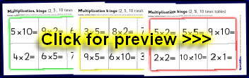Simple multiplication flash cards - 2, 5 and 10 times