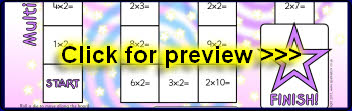 A basic board game where children move around the board and answer the multiplication number sentences.