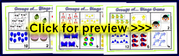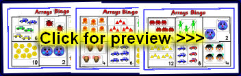 Printable bingo boards with arrays of objects and ‘groups of...’ cards to match.