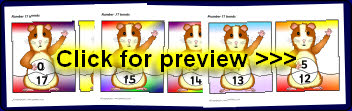 Children match together the two halves of the mini jigsaws to make number 17 bonds. Featuring a hamster character.