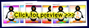 Children match together the two halves of the mini jigsaws to make number 19 bonds. Featuring a penguin character.
