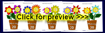 Each flower pot has two flowers showing number bonds that make 20. Also includes a black and white sheet that can be completed and coloured by pupils.