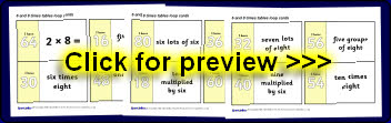 6, 7, 8 and 9 times table loop cards (Ref: SB6605)