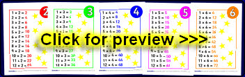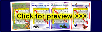 Print out and laminate these colourful multiplication square sheets for use as table-top references.
