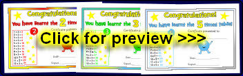 A set of colourful certificates to present to your pupils when they have learnt each of the times tables.