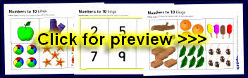 A set of simple loop cards with numbers and groups of objects from 0-10.