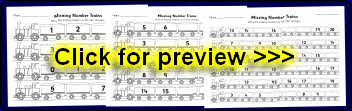 Missing numbers train worksheets (counting in 1s)